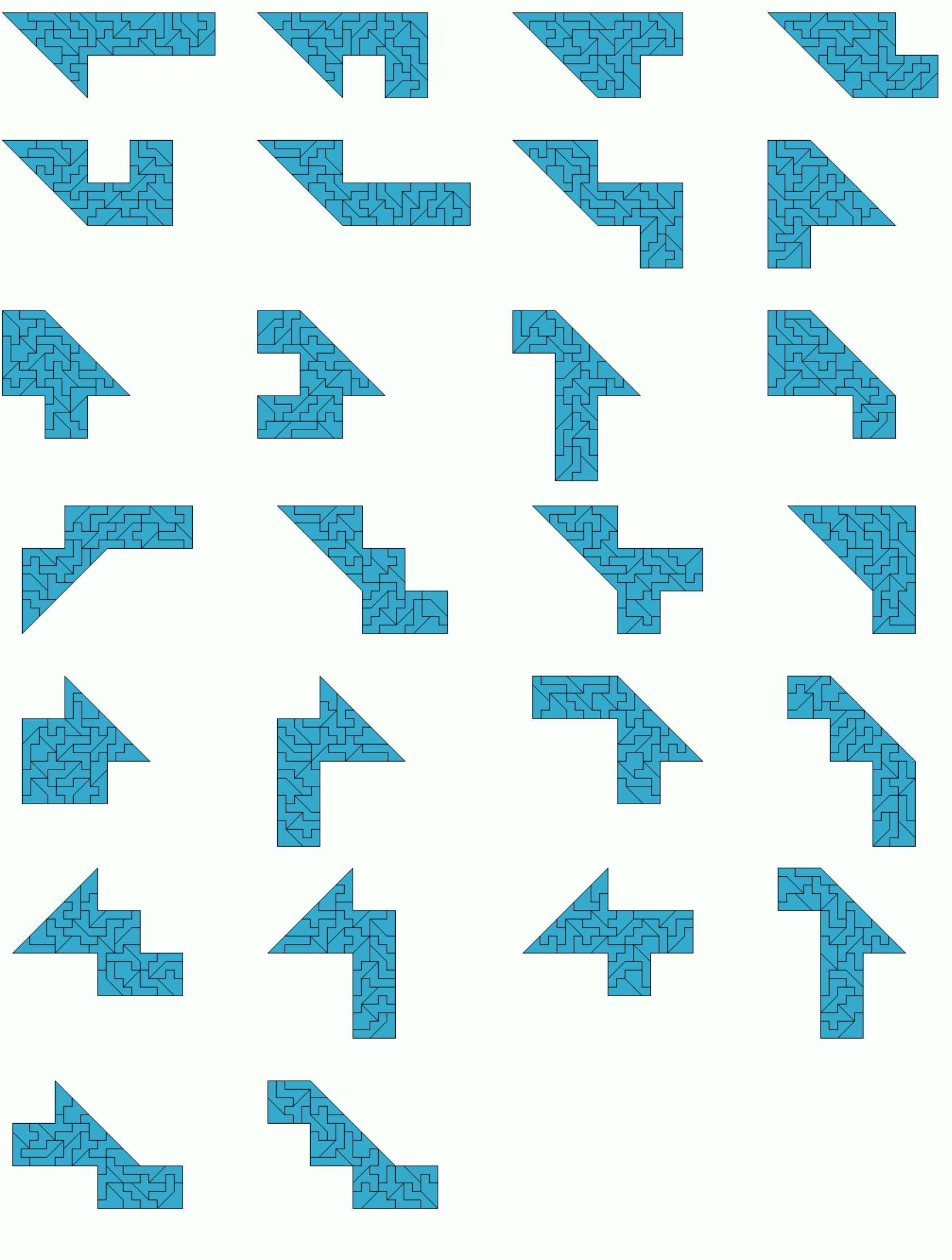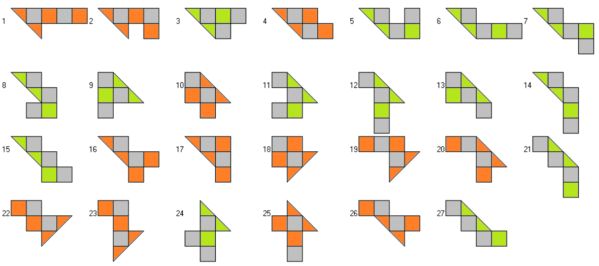 Heptominoes with Big Tans Cut off, 26 Two-sided Pieces