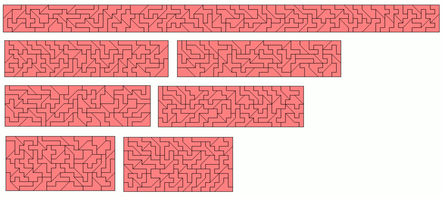 - Combining two 32x9 rectangles we get a 64x9 and a 32x18 rectangle