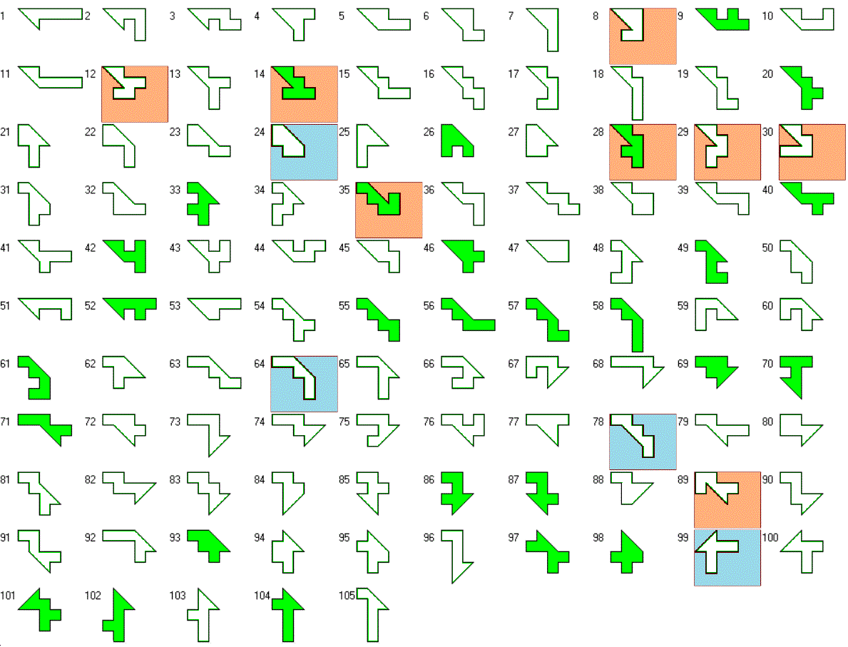 Octominoes with Big Tans Cut off, 190 One-sided Pieces