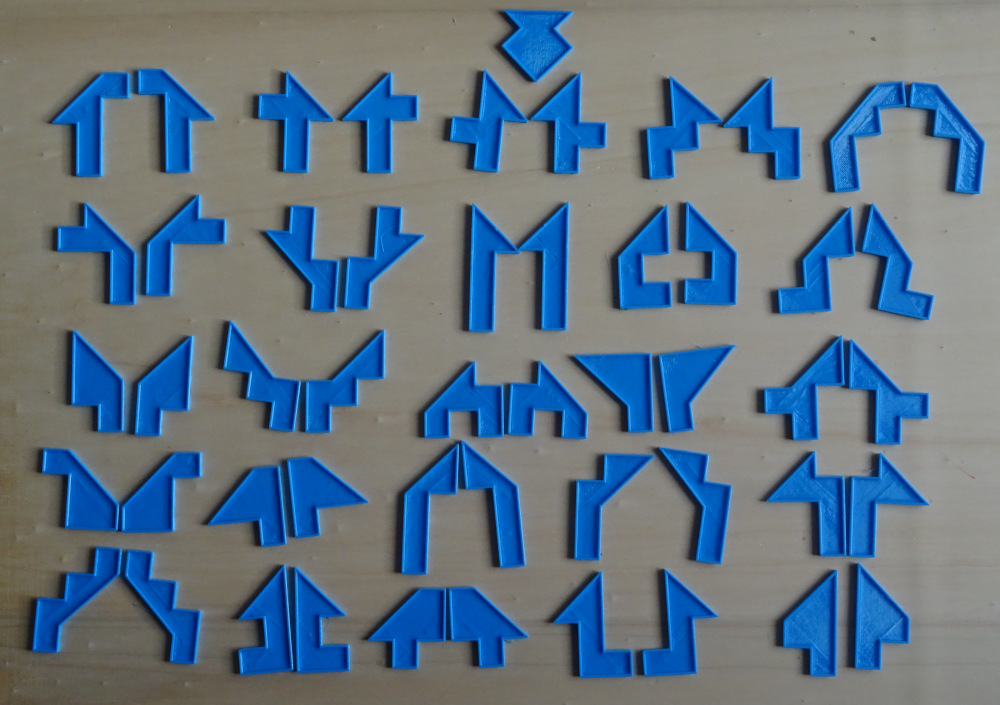 Then I made some 5-fold replicas of the pieces using 25 pieces of the set. Unfortunately the left piece can't be the replicated one. One example is shown the other ones are here.