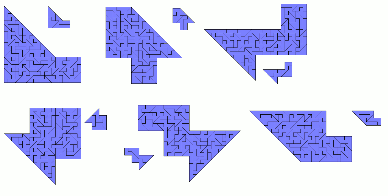Heptominoes with Big Tans Cut off, 51 One-sided Pieces