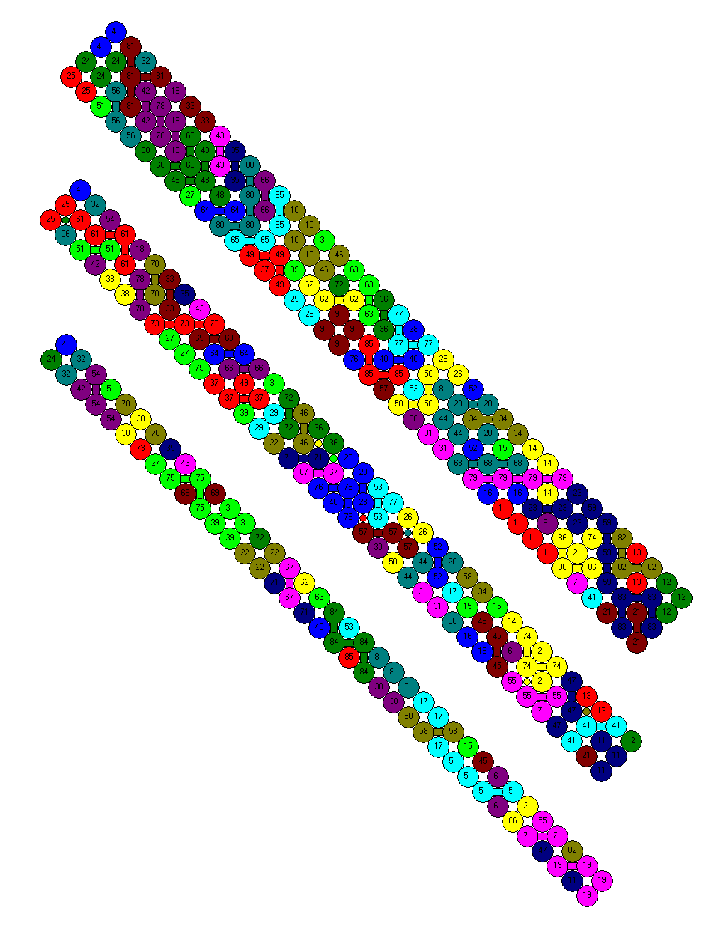 with a bottom layer of 7x7 spheres. There is a
