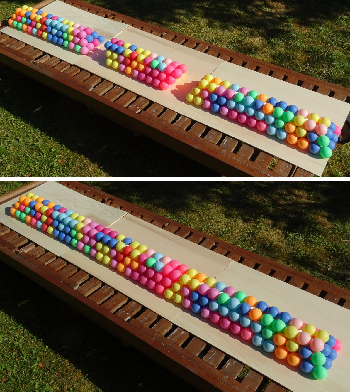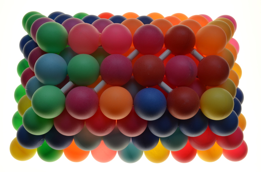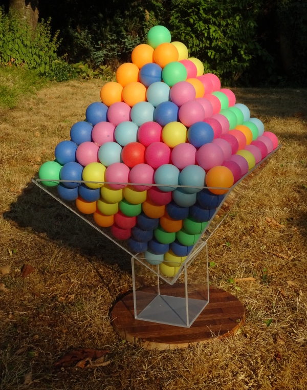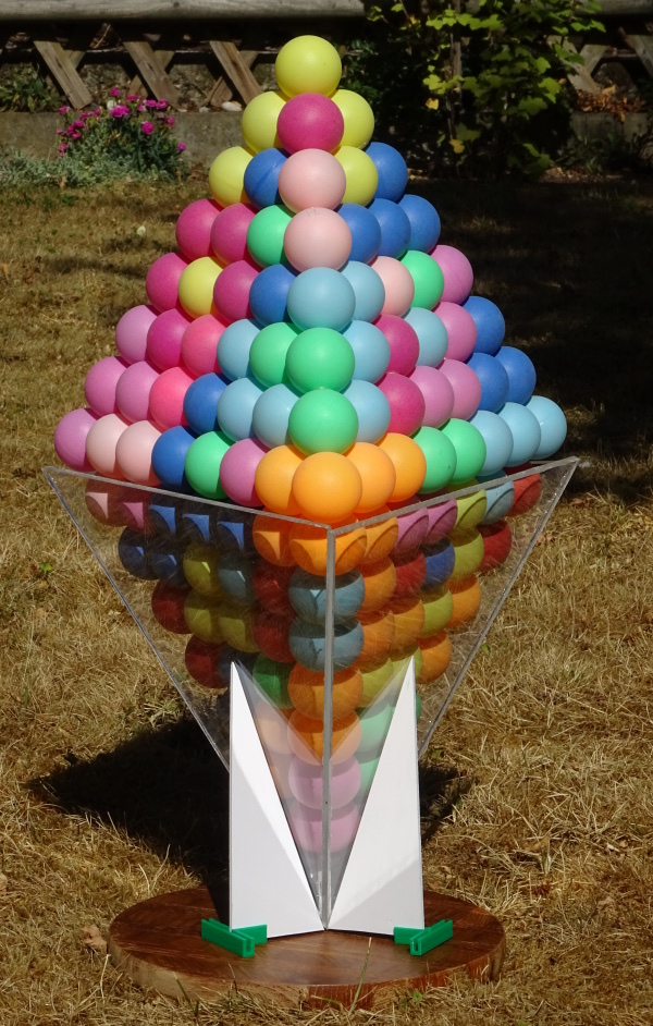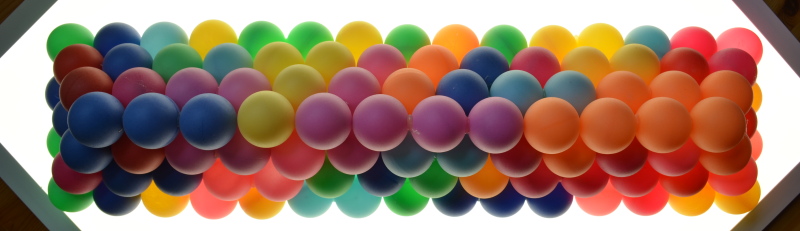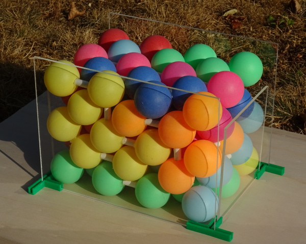 of spheres touching the faces of the box in each direction. The acrylic panes