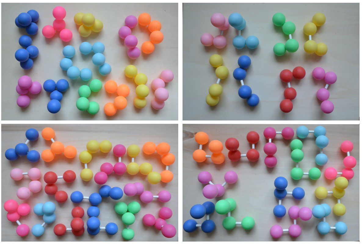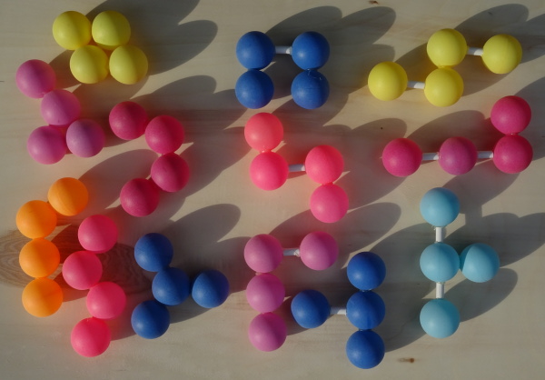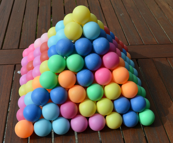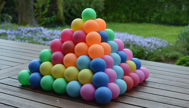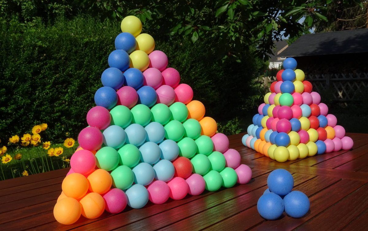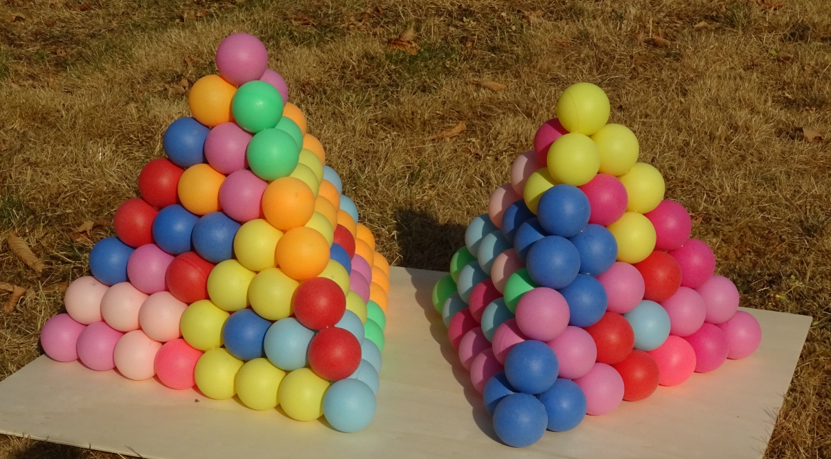 All flat pieces have a total volume of 35*4=140 spheres, which is just enough to construct a square pyramid