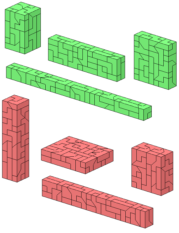 Boxes for the extended tricubes are: 2x2x28, 2x4x14, 2x8x7, 4x4x7 and they are colored green.