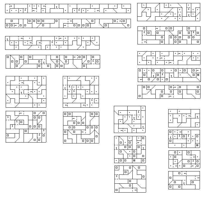 Boxes for the clipped tetracubes are: 2x3x21, 2x9x7, 3x3x14 and 3x6x7 and they are colored red.
