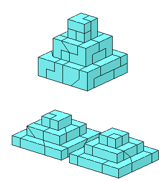 Take the known polycubes, slice one cube diagonally or add a sliced cube at any position and you'll get different pieces, which can be used to construct various forms and figures. I learned about this concept from