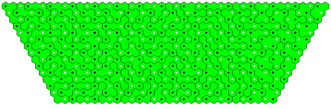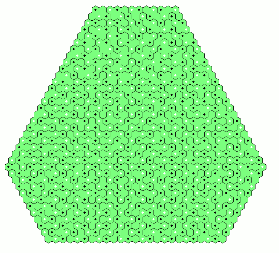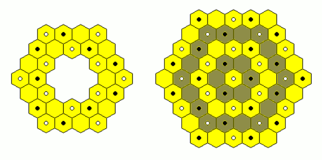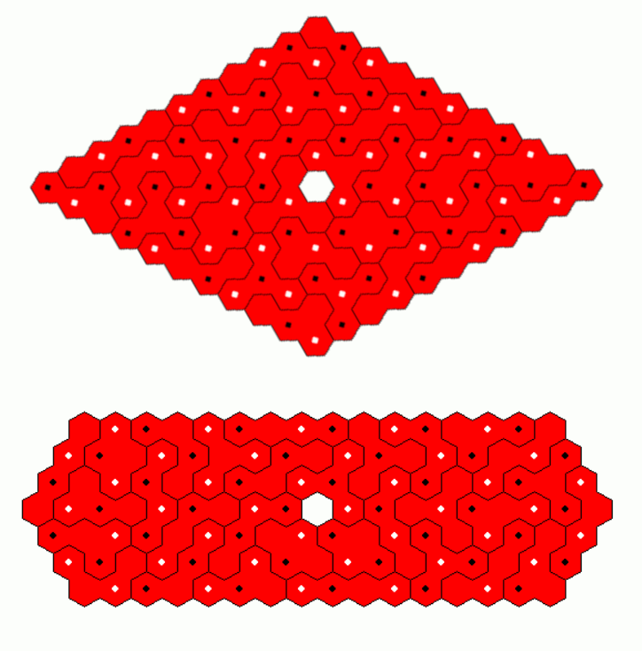 A small hole of three hexagons at the center of rotational symmetry is also possible.