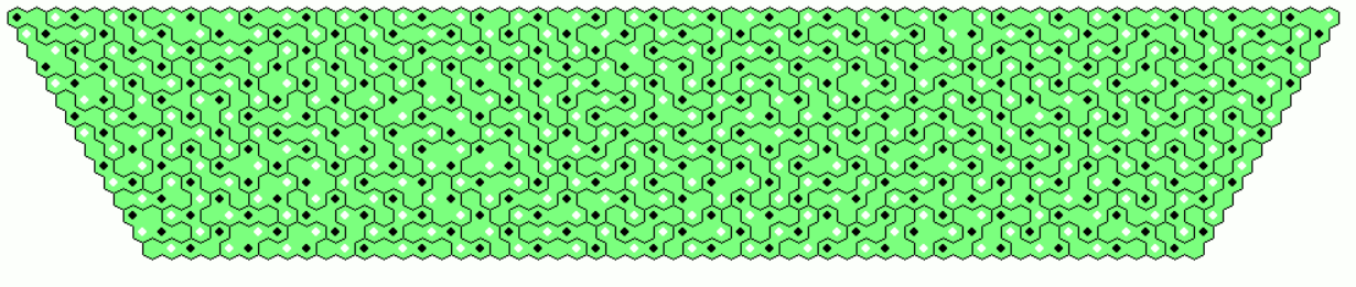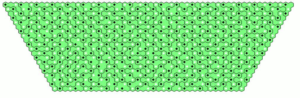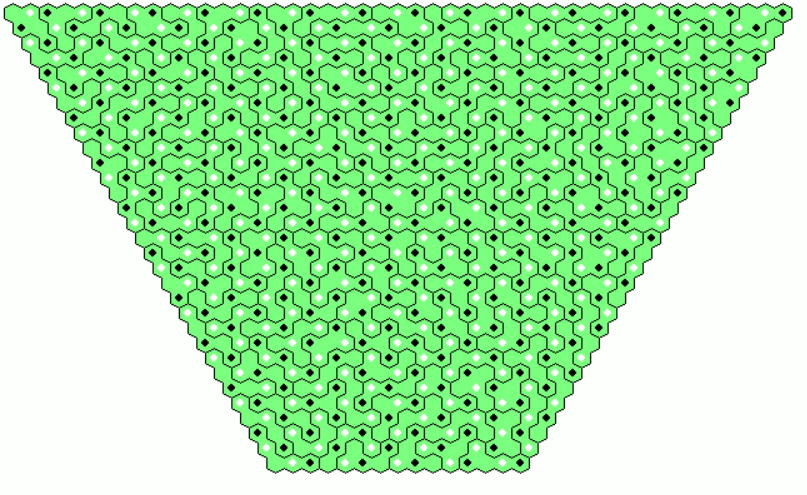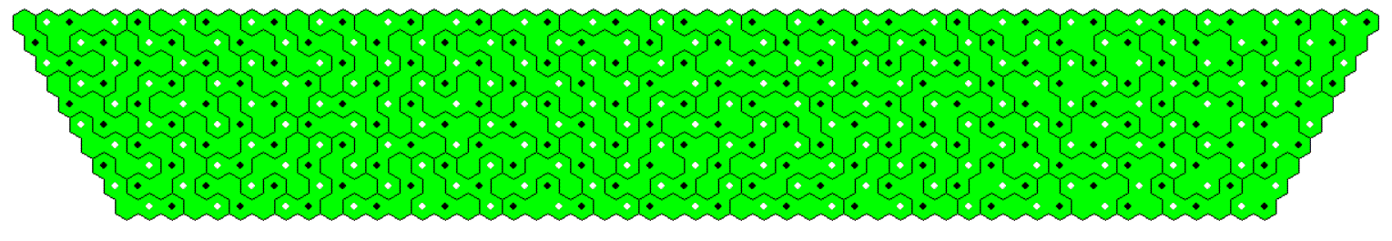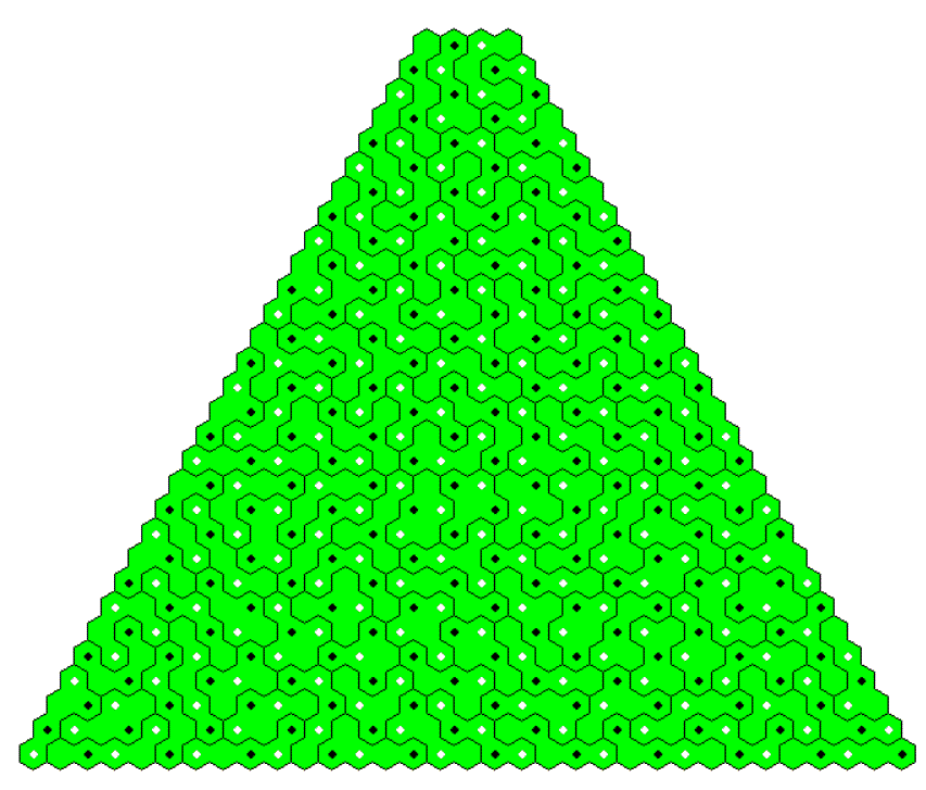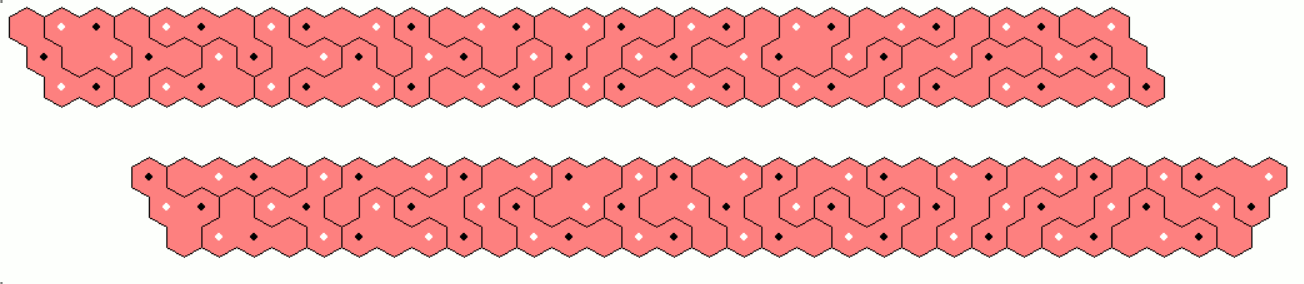 The set has a total area of 192 hexagons and I looked for solutions of a(a+1)/2-3b(b+1)/2=192 to get semiregular hexagons with triangle symmetry.