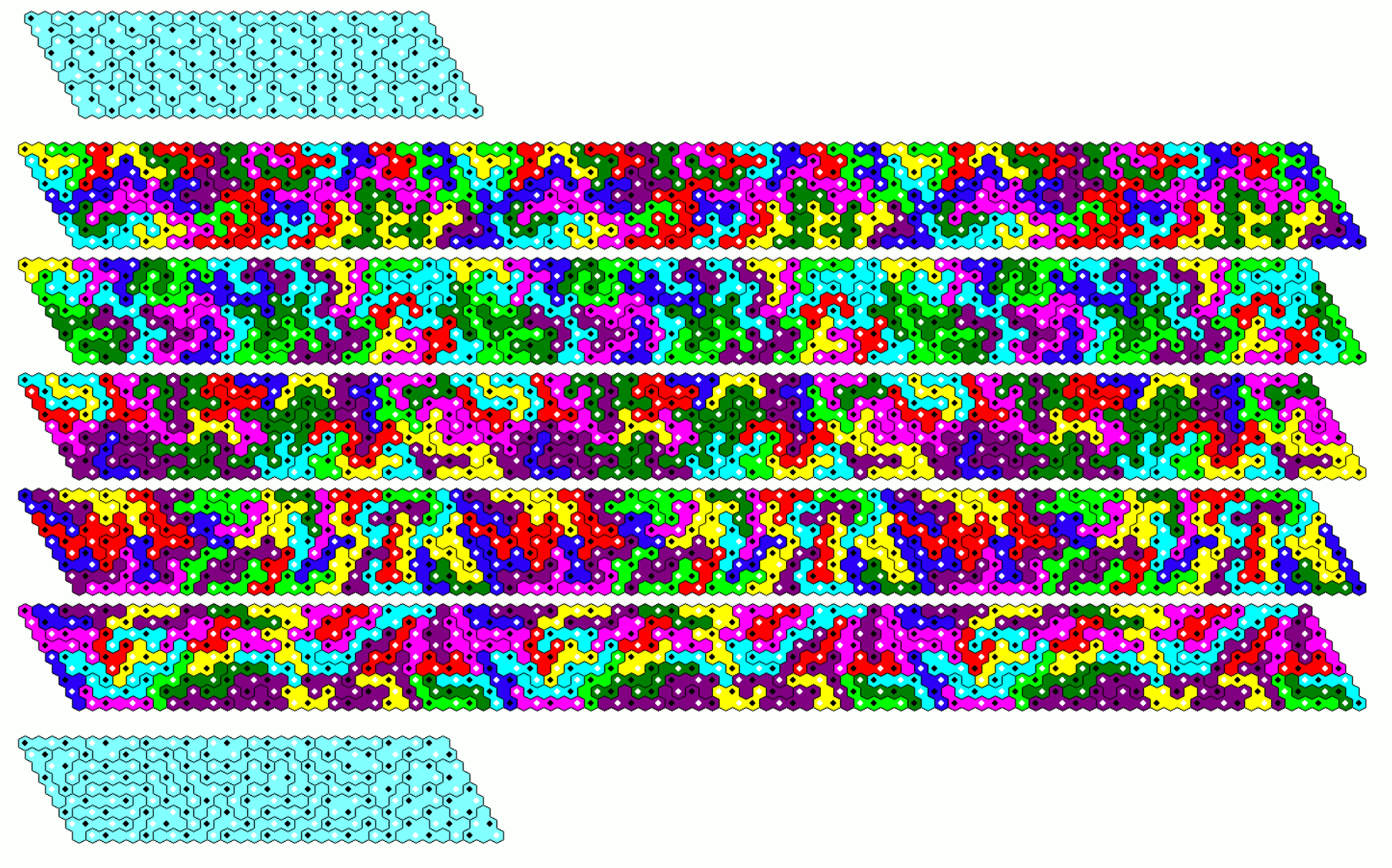 Instead of three colors for the grid you can also use three kinds of hexagons as shown above.