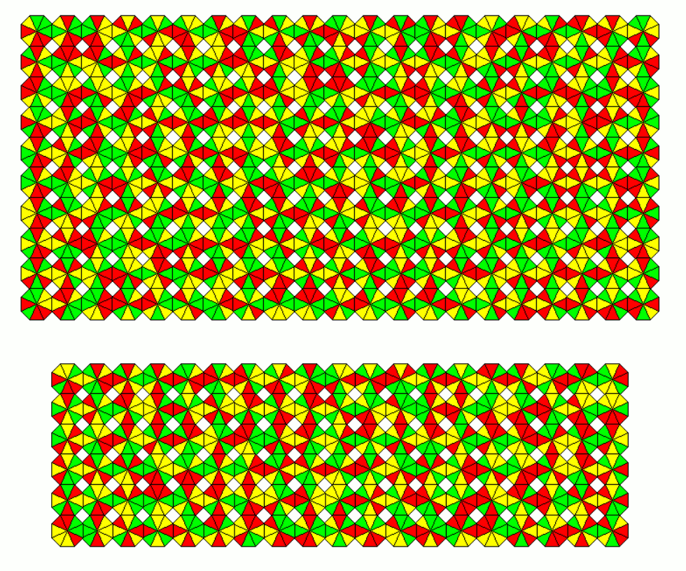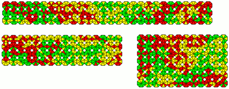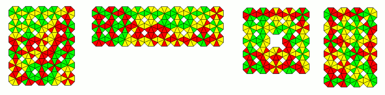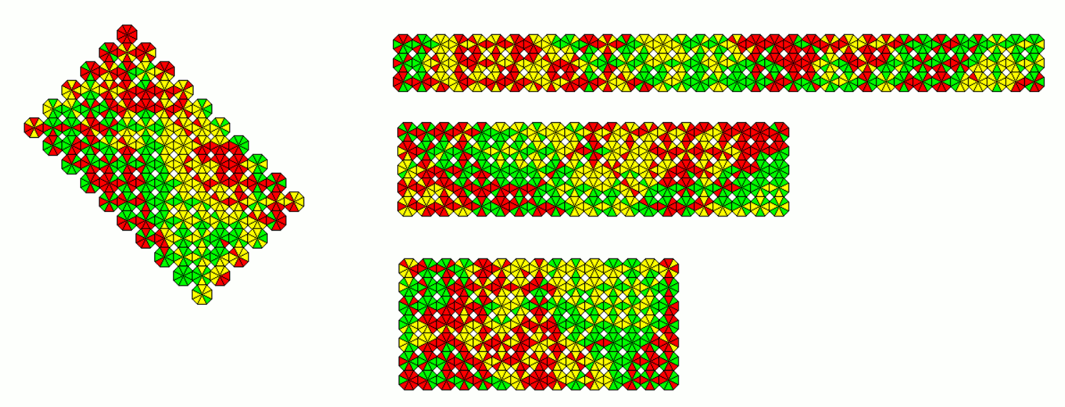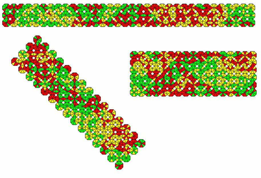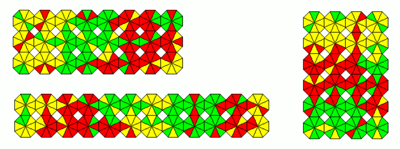 These sets are slightly smaller as the other ones. As an example a 18x9 rectangle with the 162 one-sided pieces and a 11x9 rectangle with the 99 two-sided pieces is shown.