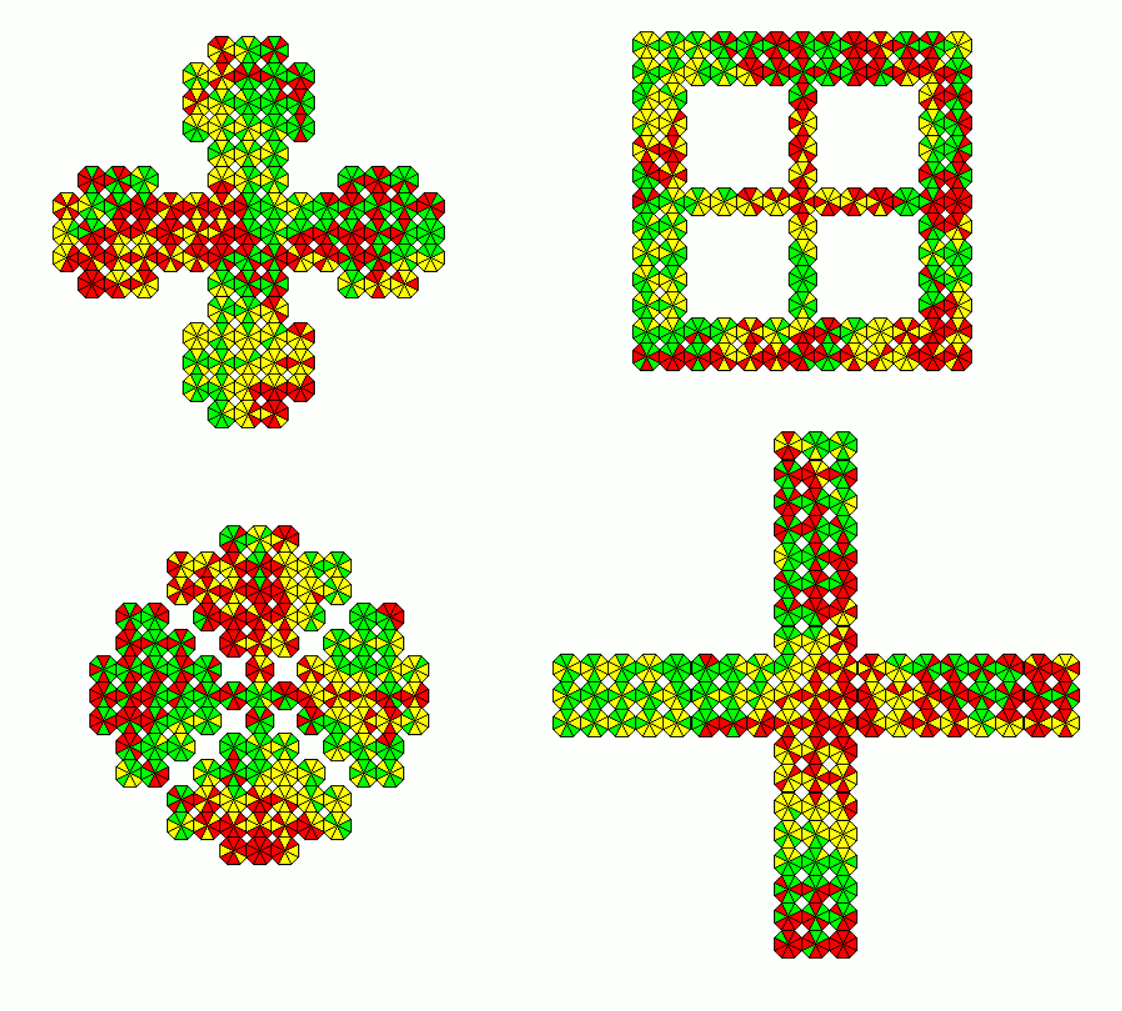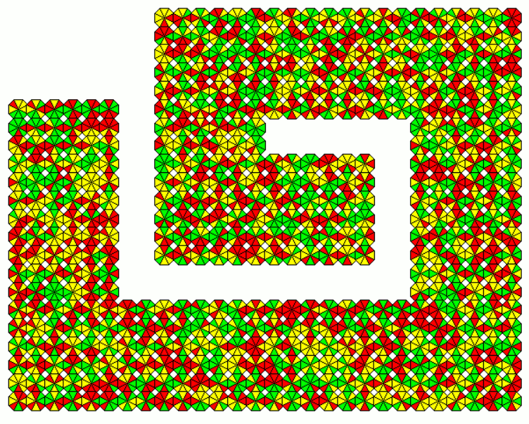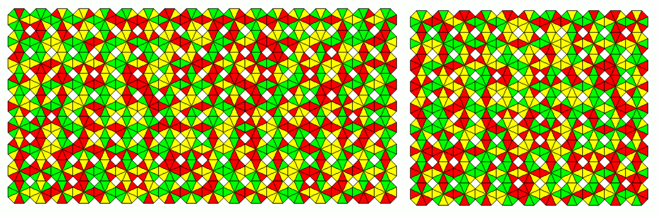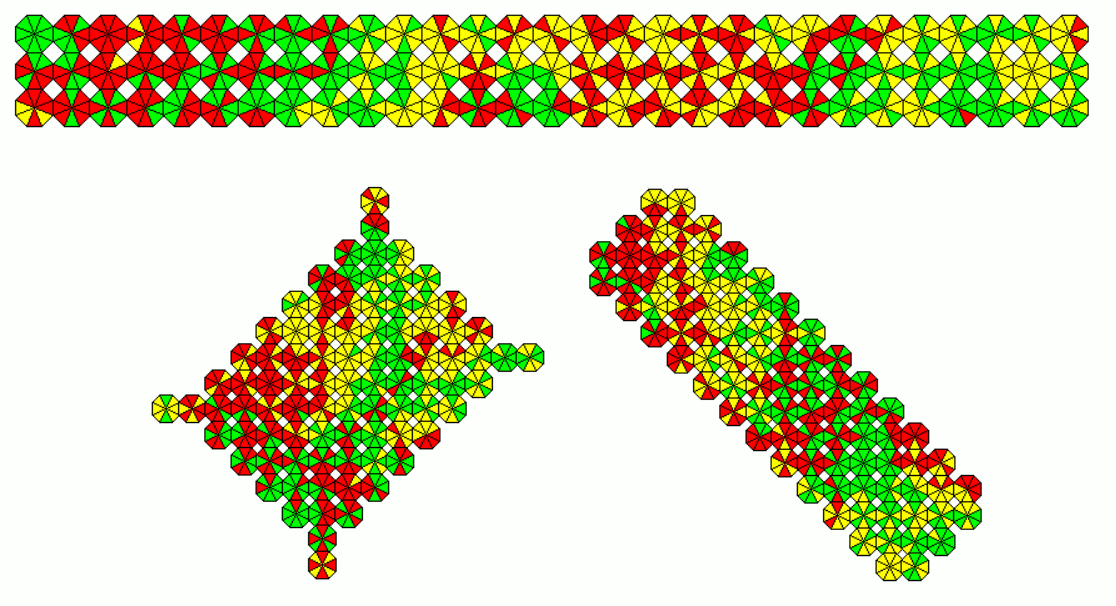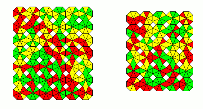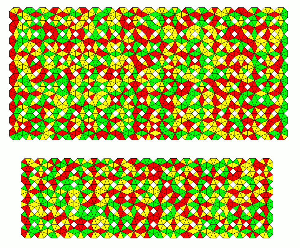These sets are slightly smaller as the other ones. As an example a 18x9 rectangle with the 162 one-sided pieces and a 11x9 rectangle with the 99 two-sided pieces is shown.