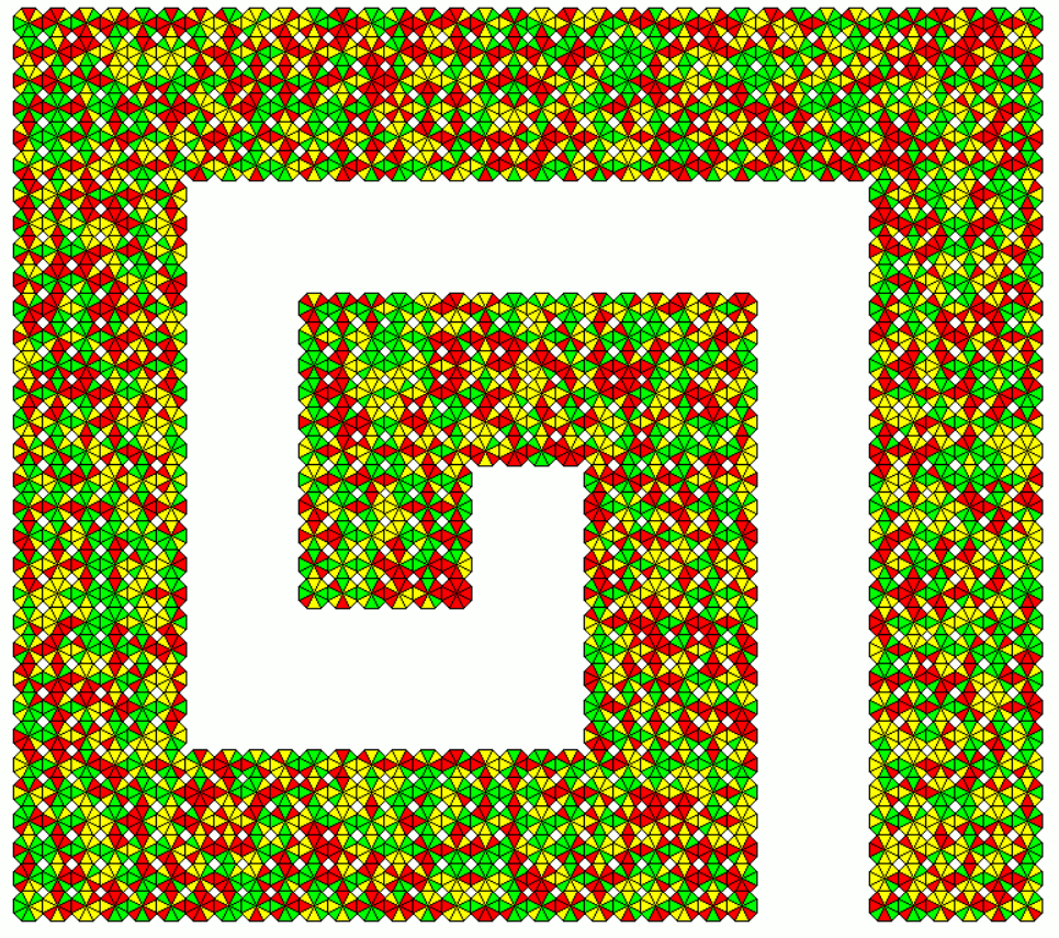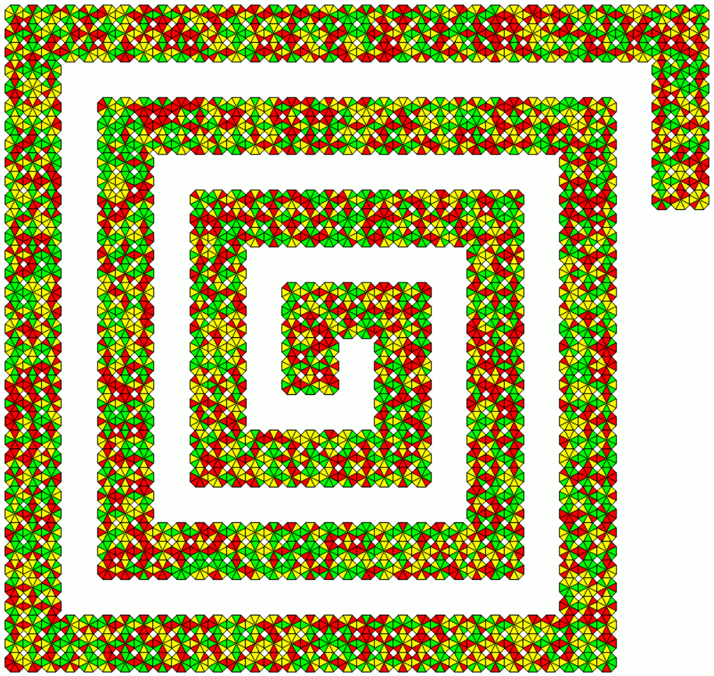 The two-sided set can also cover a 45x11 rectangle with more matching sides than the spiral.