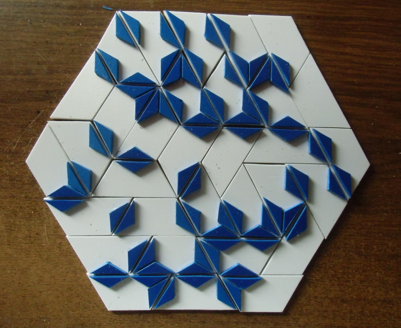 A long time ago I made some constructions with edge-colored squares, triangles, hexagons and rhombs. Jared McComb