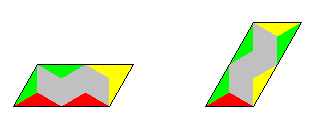 | Colors | Parallelogram Type | Number of Pieces | Total Number of Triangles |