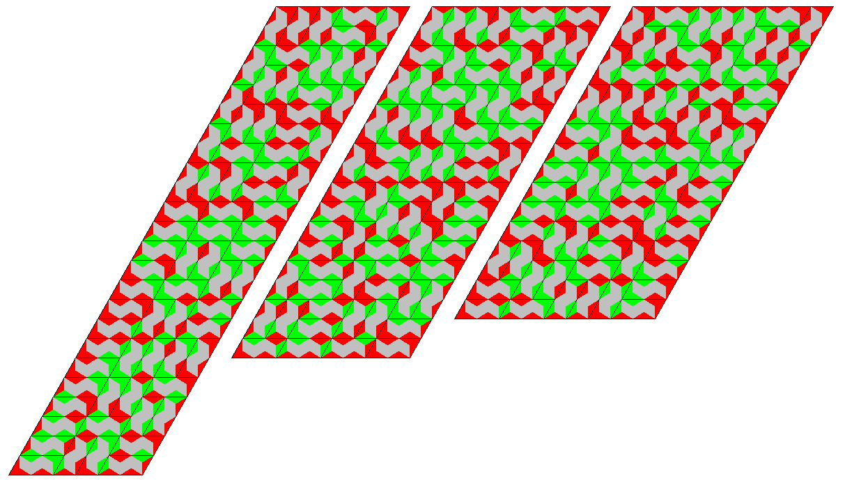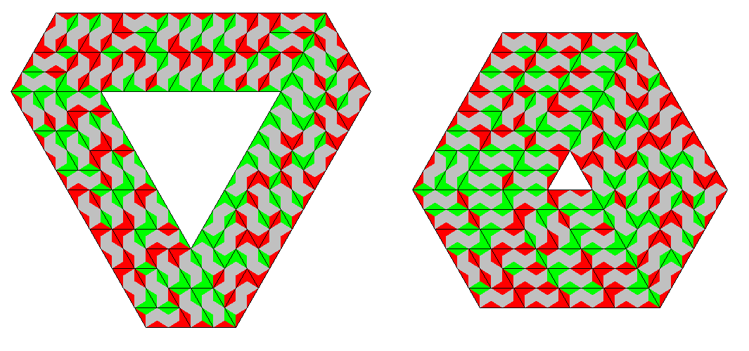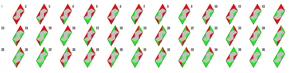 | one-sided 2x1 and 1x2 | 72 | 288 | parallelograms, rhomb, rings with triangle or hexagon symmetry | |