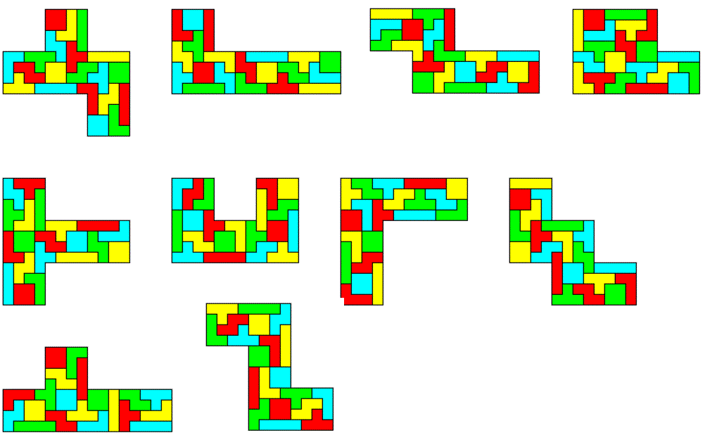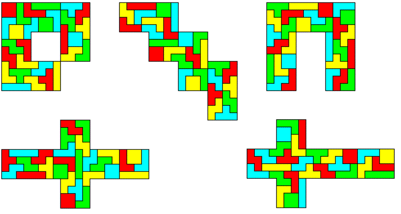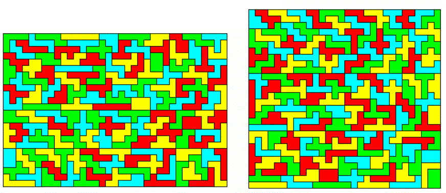 A rectangle with four sets of two-sided tetrominoes is shown above.