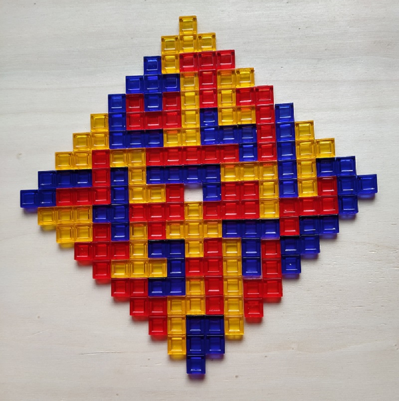 Jared McComb suggested the jagged square, which was the first figure to start exploring sets of colored polyominoes.