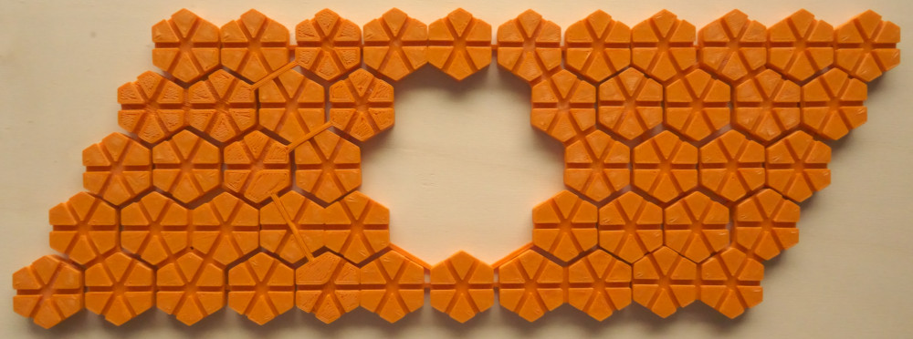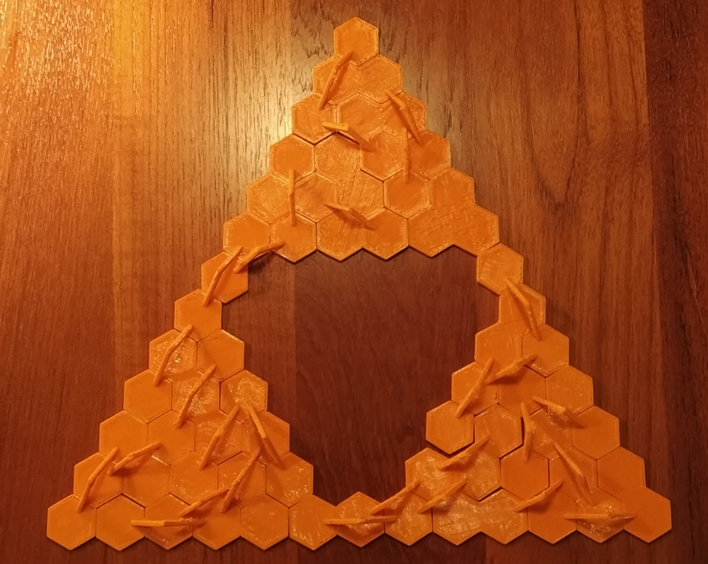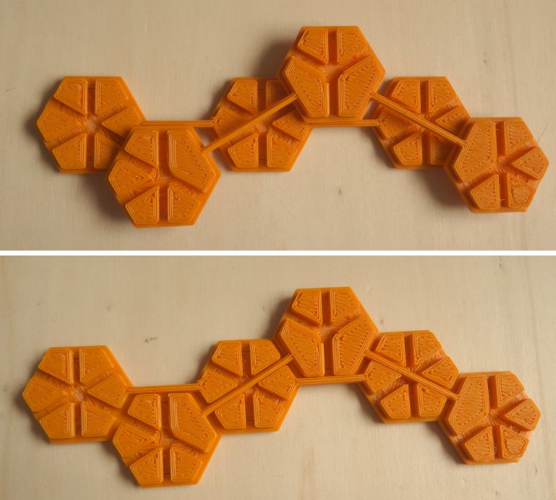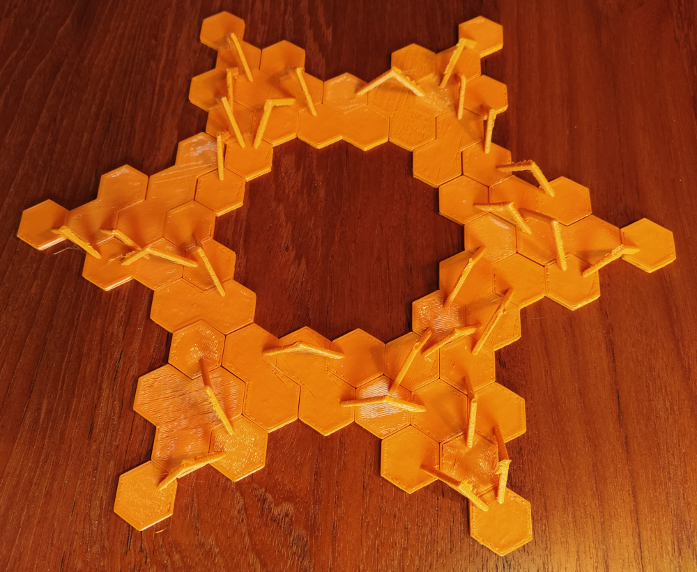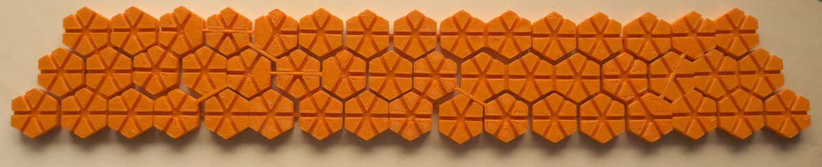 The printed pieces are rather fragile, because the bridges are too thin and they don't stick perfectly to the hexagons.