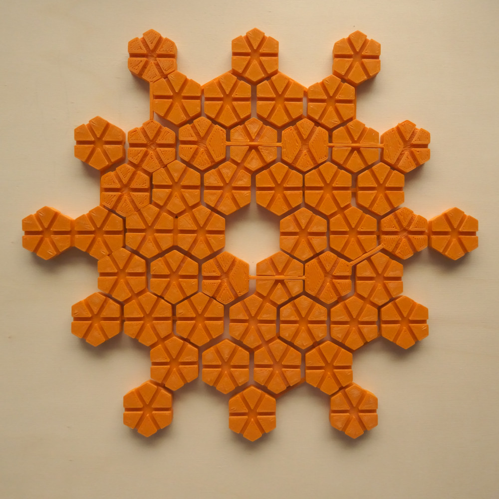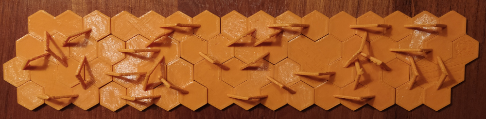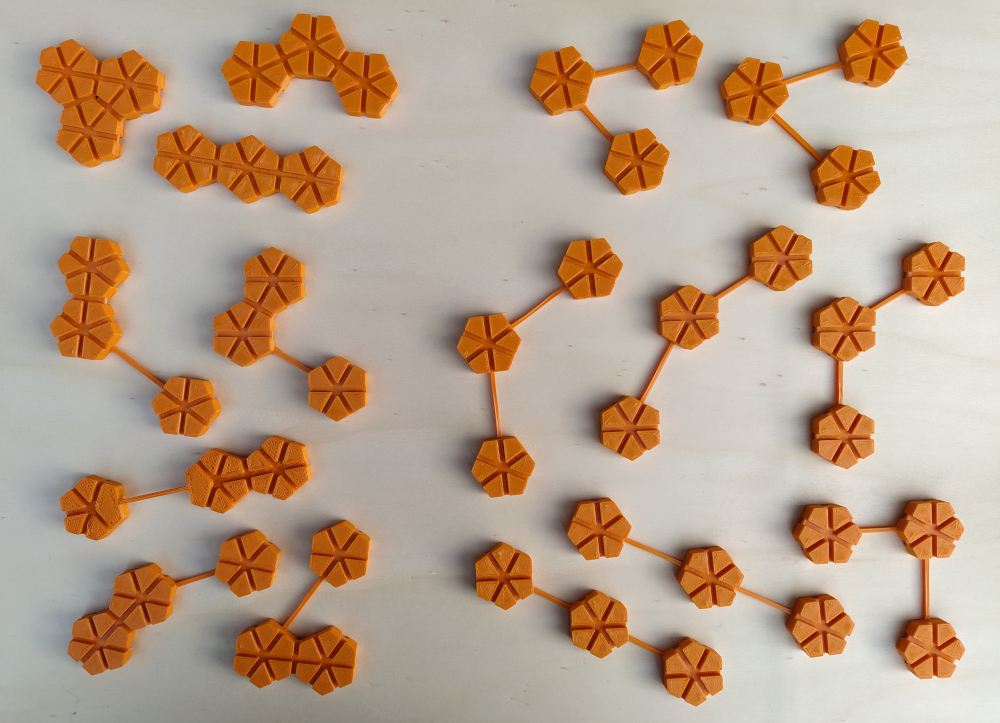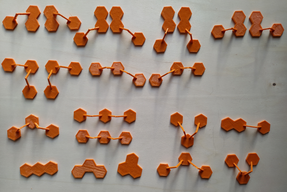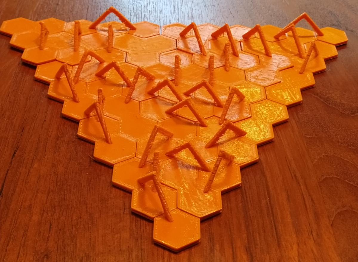 The printed pieces are rather fragile, because the bridges are too thin and they don't stick perfectly to the hexagons.
