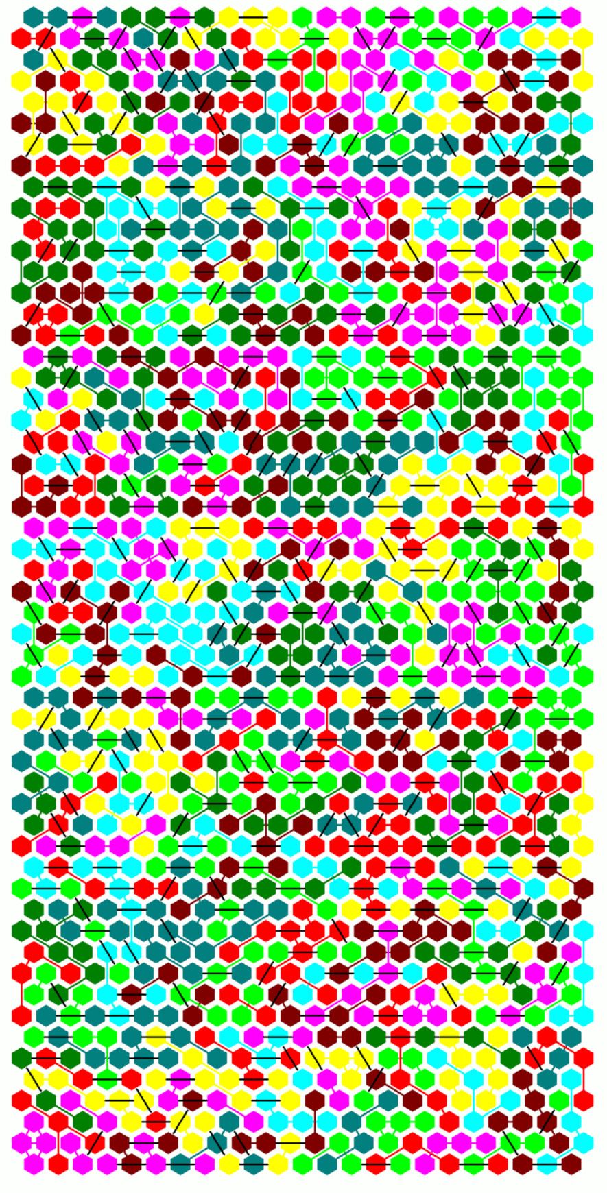 I noticed that the total area of 720 hexagons is just enough to fill a hexagon od size 16. You should split the whole hexagon into some stripes, because such stripes are easier to fill. First you must use as many bad pieces as possible, wheras the pieces with high tileability are saved for the last parts.