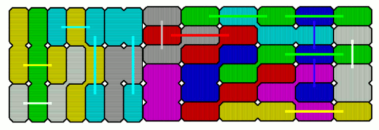If we add six grid elements we have a total area of 63 and can construct 7x9 rectangles with holes of six rectangles connected at their sides like hexominoes.