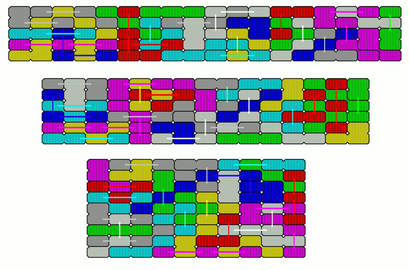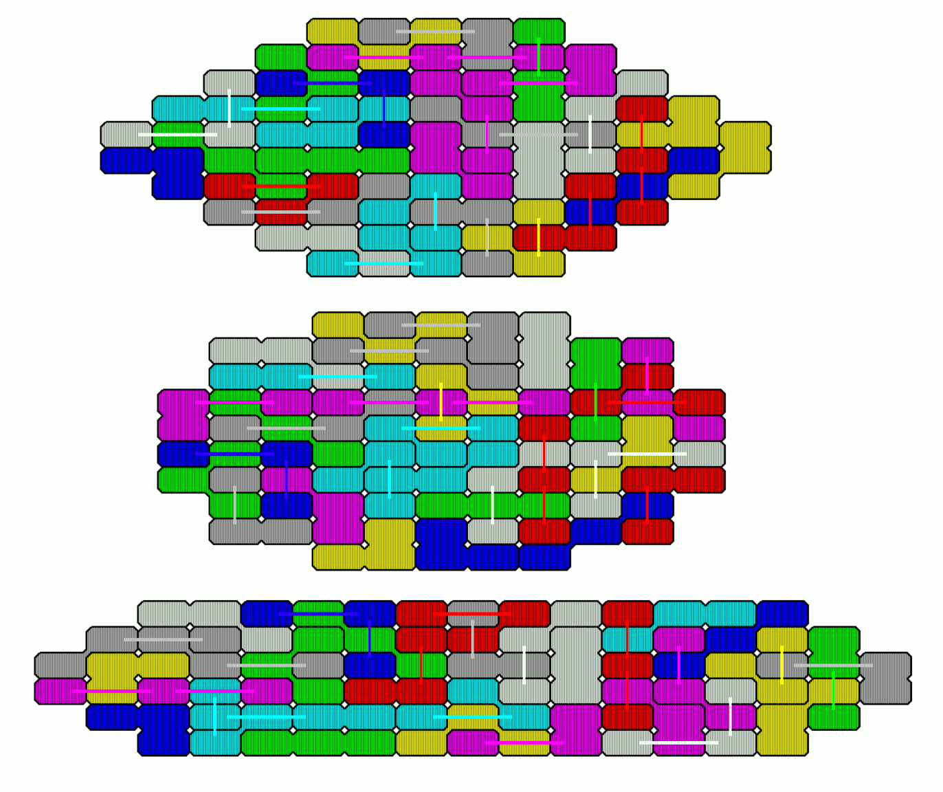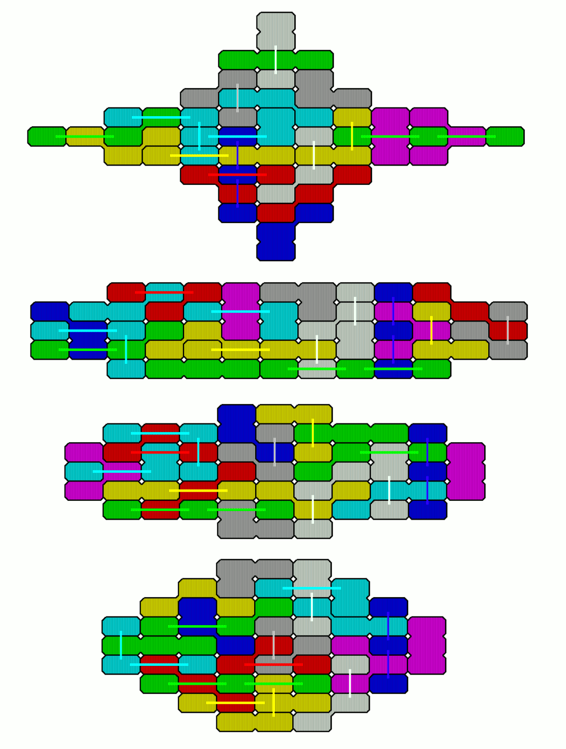 The set of one-sided pieces with three connected rectangles has 30 elements and a total area of 90 rectangles. The obj-files of the printed pieces are here, but solving problems by hand seems to be more difficult for this set.