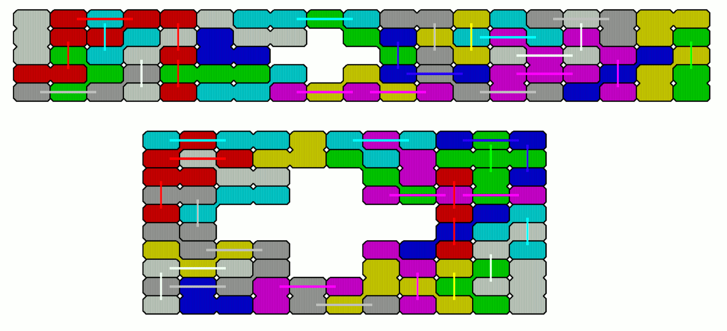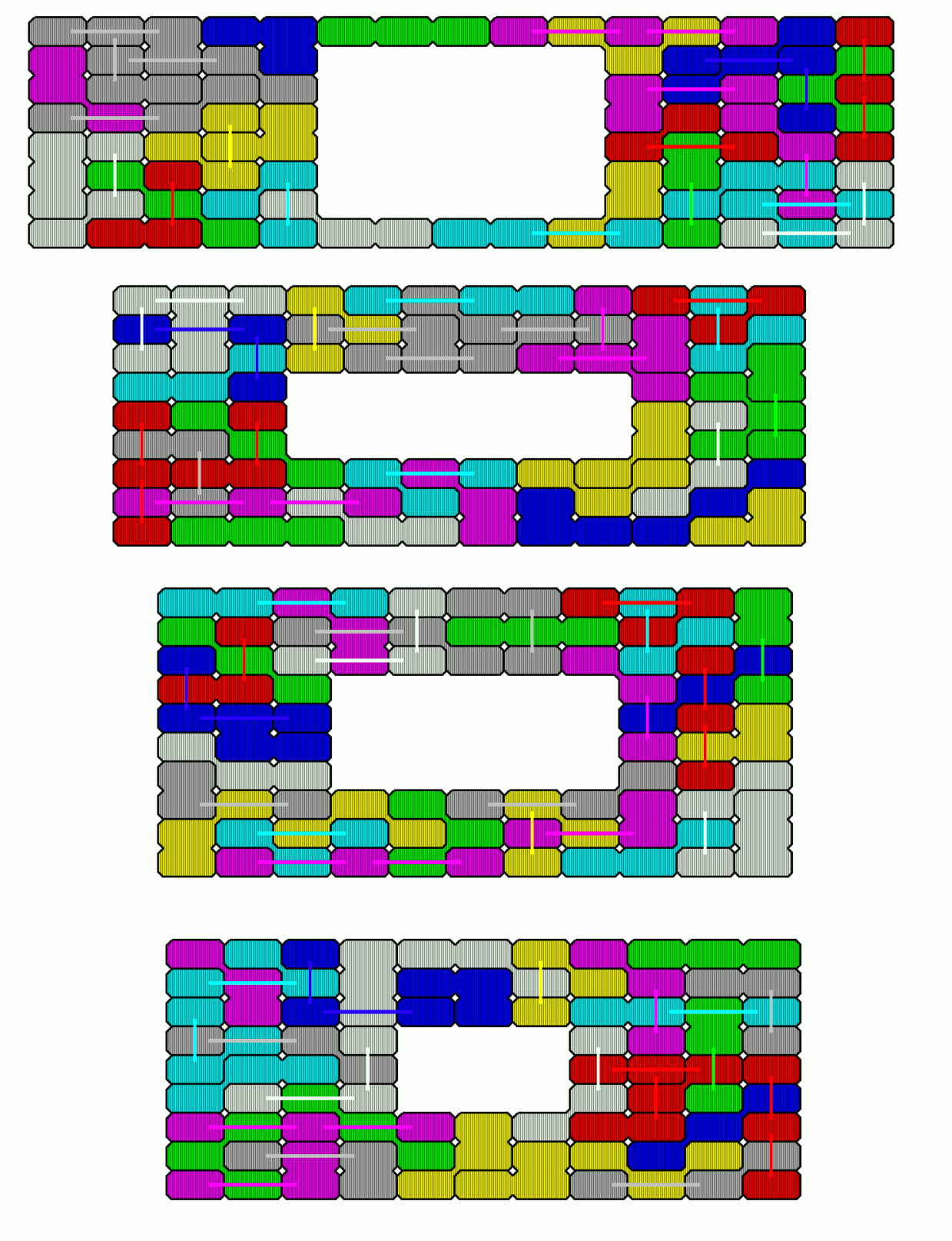 Pentarectangles are rectangles connected at their sides. Holes shaped like pentarectangles can be placed in some rectangles.