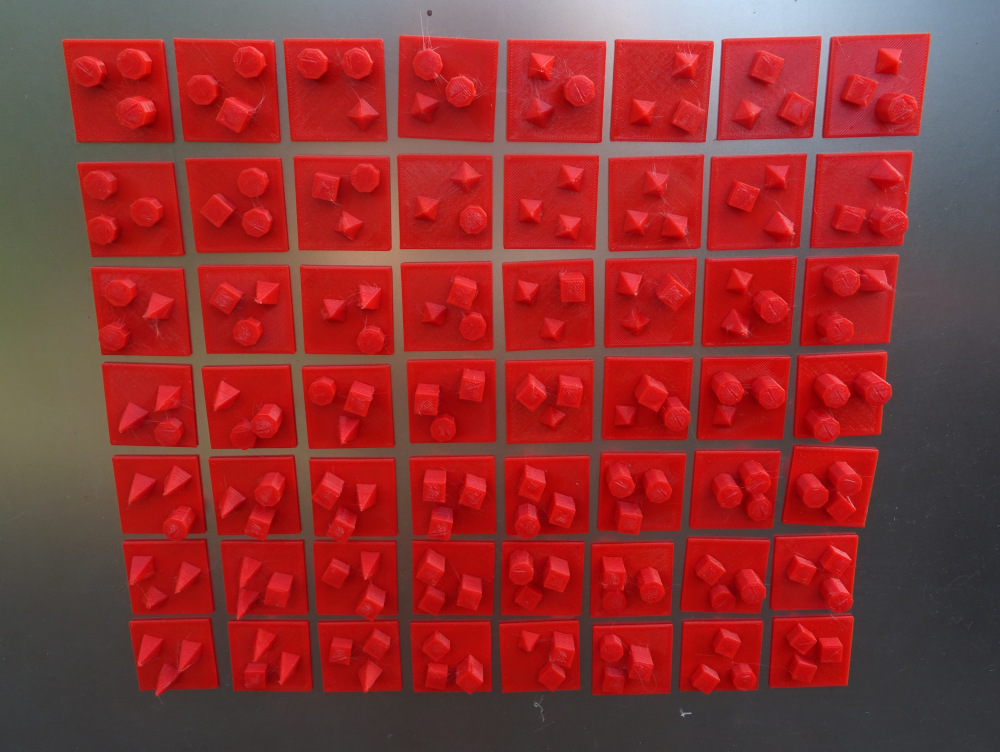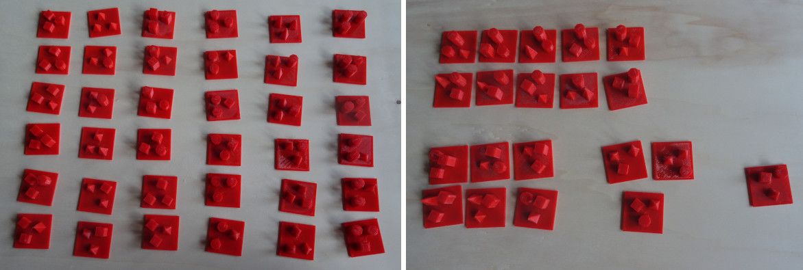 The six items to choose from are high and low boxes, high and low octogonal prisms and high and low pyramids.