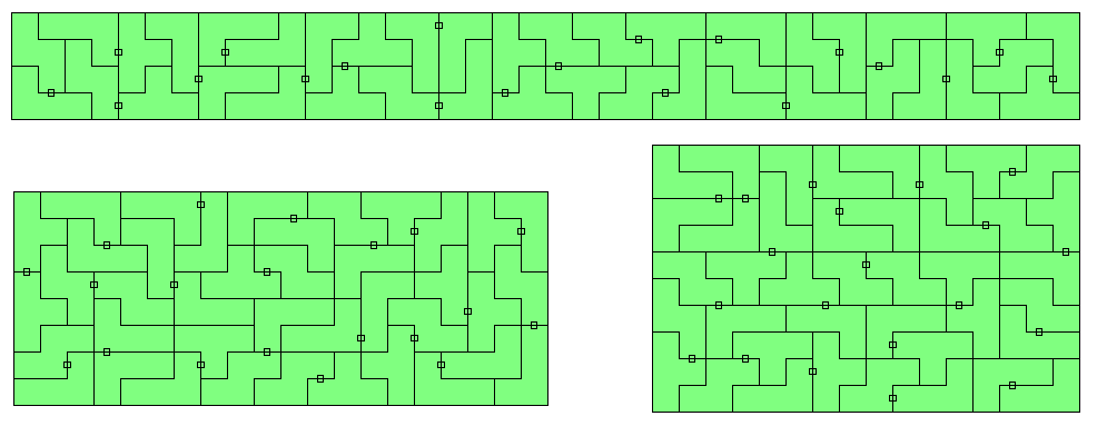 | X | - | X | - | - | 95 | 380 | no rectangles T-tetrominoes are unbalanced under checkerboard coloring |