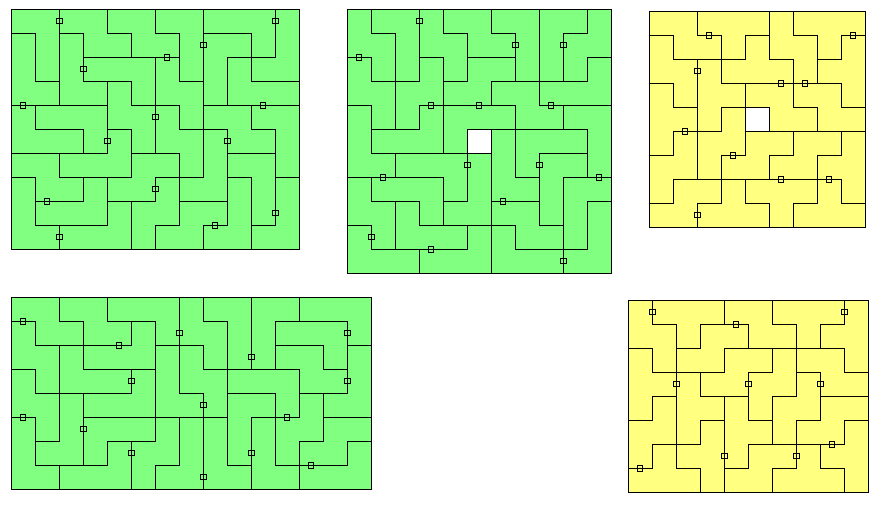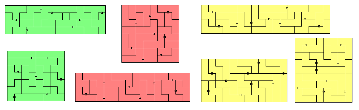 | X | - | X | - | - | 50 | 200 | no rectangles T-tetrominoes are unbalanced under checkerboard coloring |