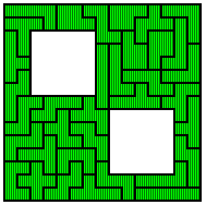 Starting with a 15x15 square we can choose the position of two 5x5 square holes