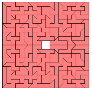 A symmetric hexagon and an octagon can also be constructed. We start with a 20x20 or 21x21 squares and cut triangles of size 2 or 3 and 6, respectively. By reflecting a pentagon or a hexagon made with the two-sided pieces a different hexagon and an octagon are possible.