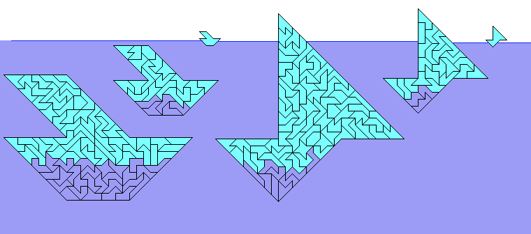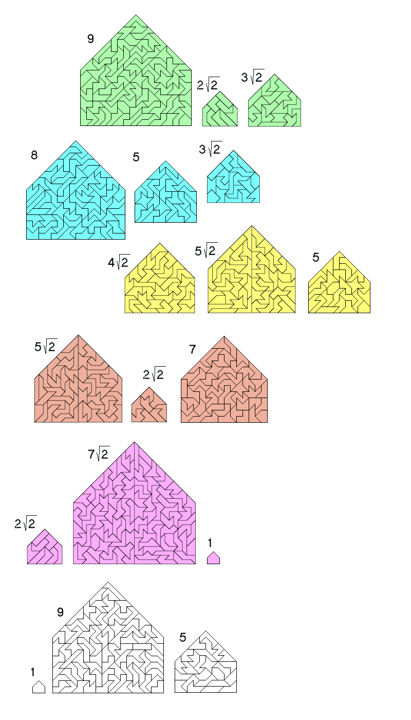 no acute angles. All possibilities with three different-sized replicas are shown.
