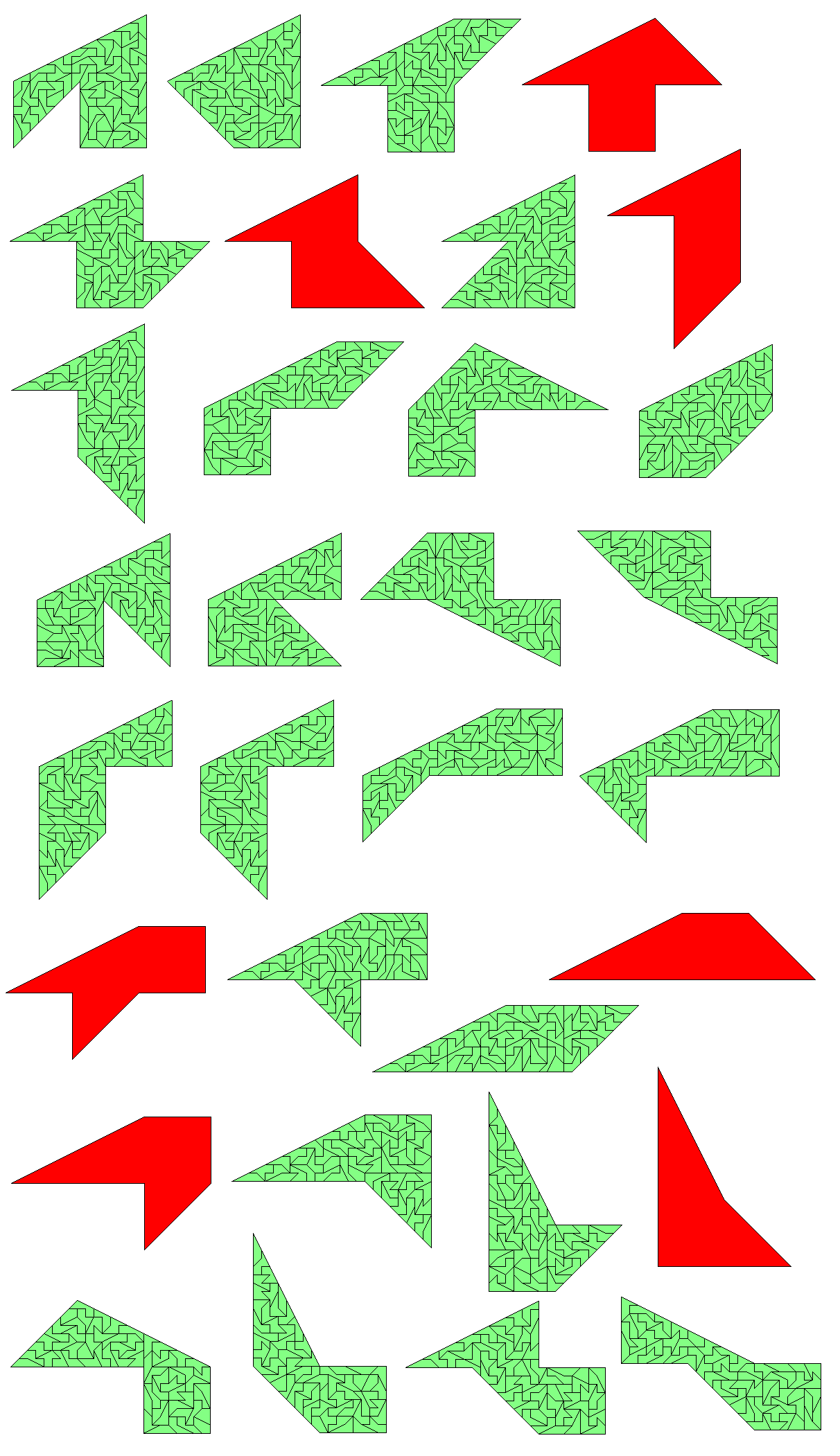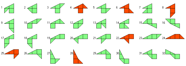 can't be flipped reducing their tilability. Six pieces and their mirror pieces cannot be replicated at all.They are marked