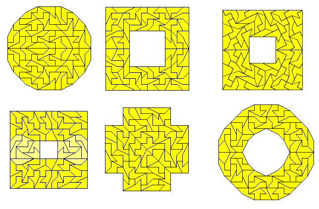 There are some figures with pentomino shaped holes at roel's site and I tried to solve all cases.