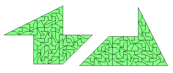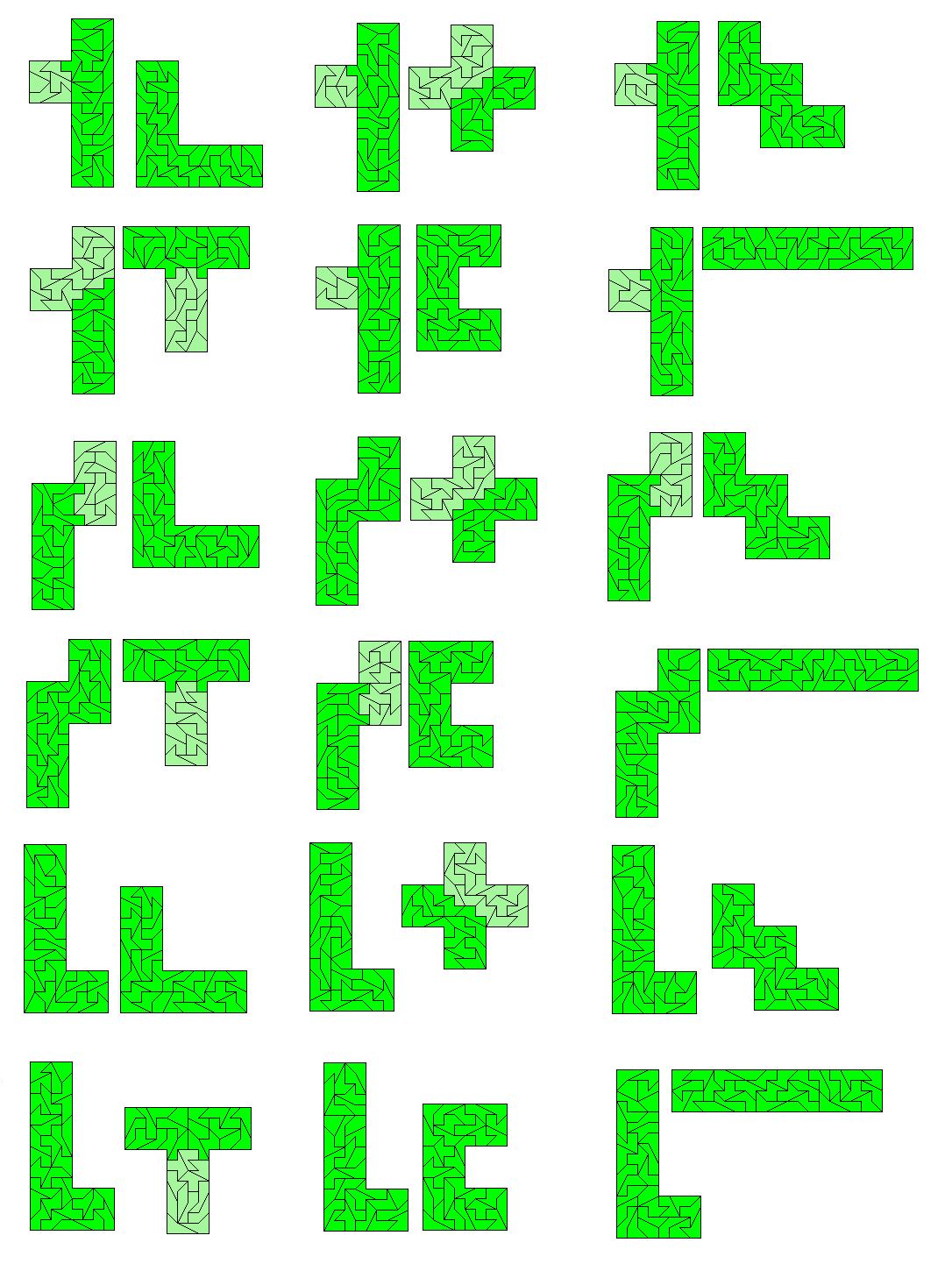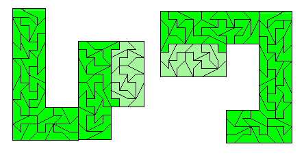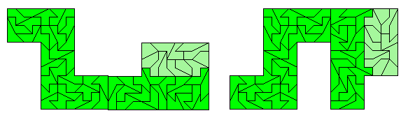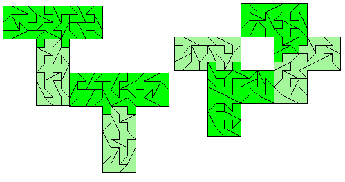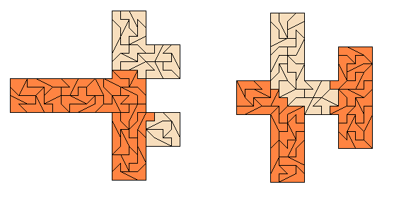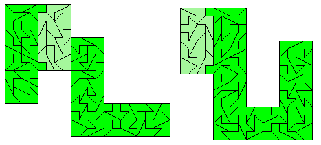 e) Two Different Asymmetric Pentominoes Both Unmirrored