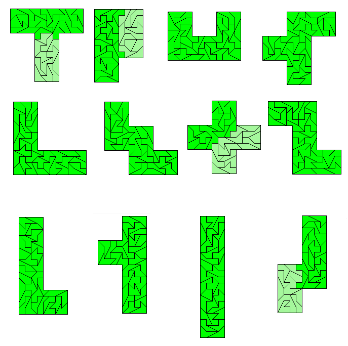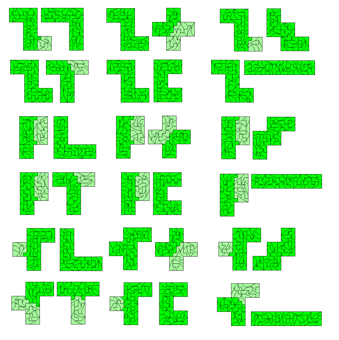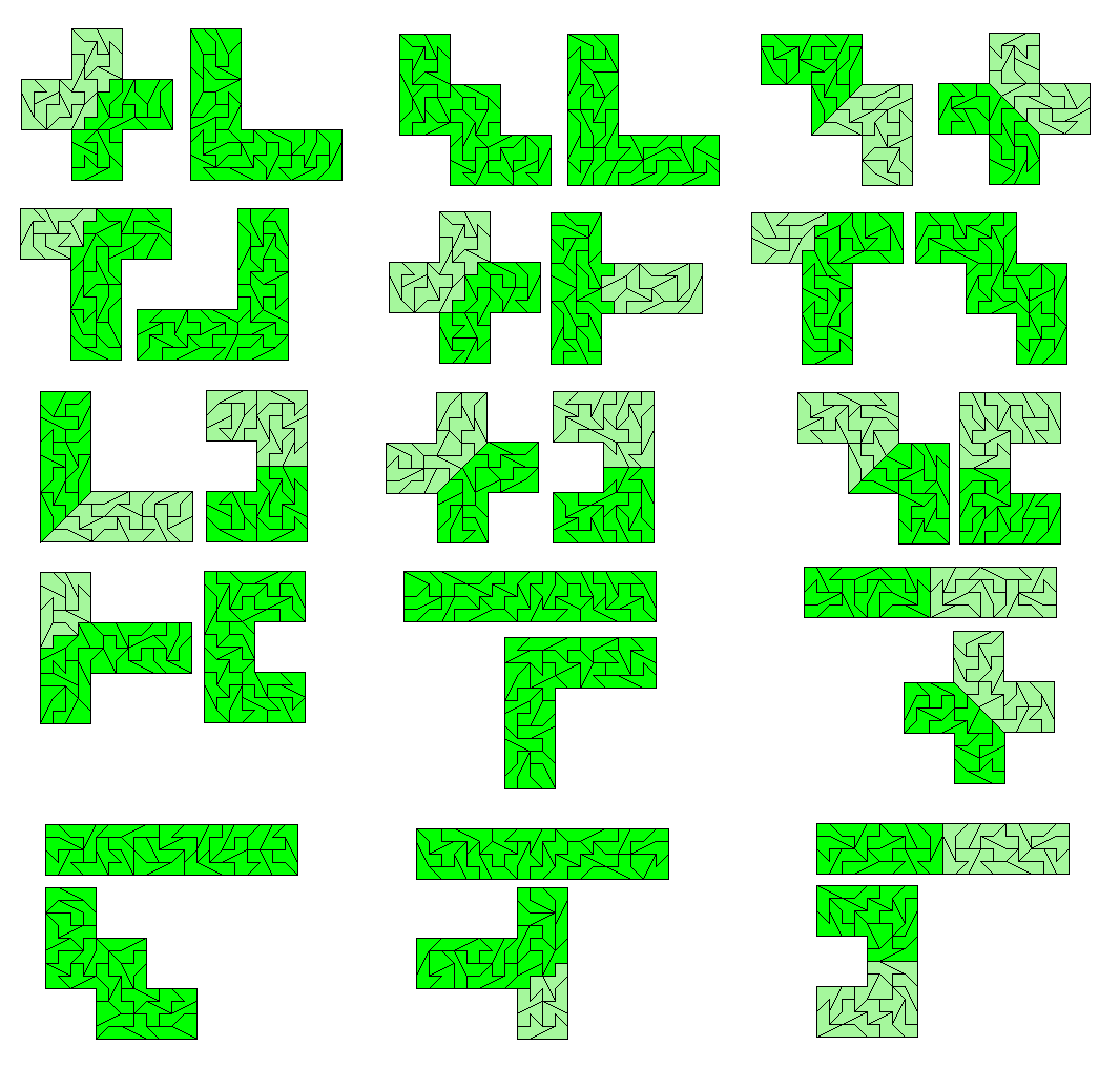 On the 6th of Februrary in 2001, I started to make quadruplications of the pentominoes and the last replica