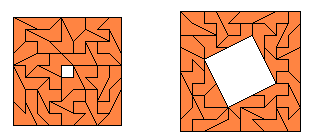 Beside the 9x9 square with an 1x1 hole, which I found in 2001, a new similar hole figure with a tilted square