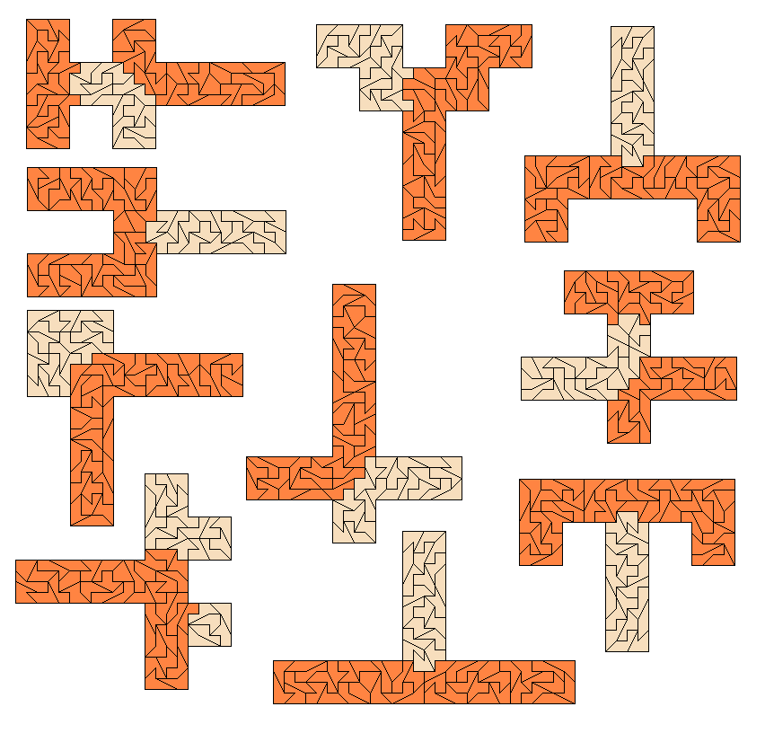 In 2001 Roel Huisman suggested a set of polyforms made up of a square, a sliced square (tan) and a sliced domino (dom).