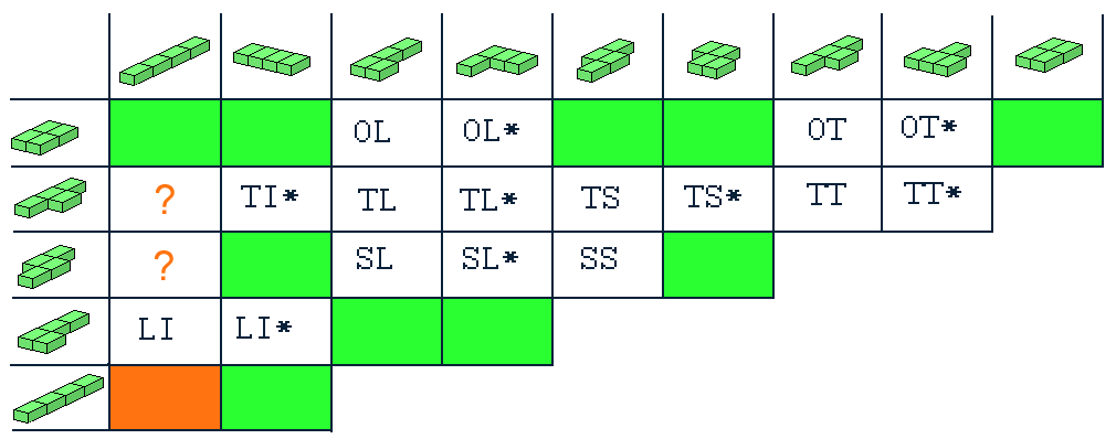 cross-sections. The table shows the possible combinations. The red field isn't possible, the green